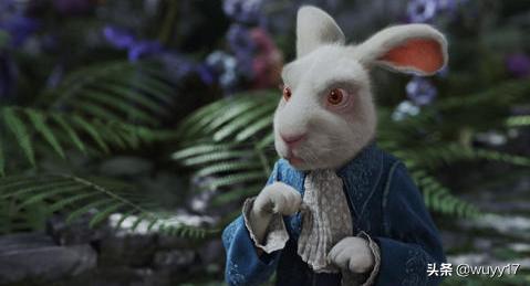 2、兔子(The White Rabbit):一只穿着背心的白兔,在故事开场正要去给女王取东西的它喊着“天哪!天哪!要迟到了!”跑过爱丽丝面前,引起了她的注意,为了追它,爱丽丝才从兔子洞掉进了那个神秘的世界,后来爱丽丝在它的家里又误喝了一瓶魔药而变成巨人。