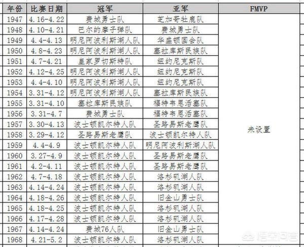 这是从1947年联盟开始到现在的历届总冠军