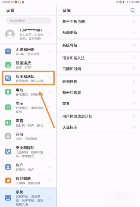 2.点击应用和通知。