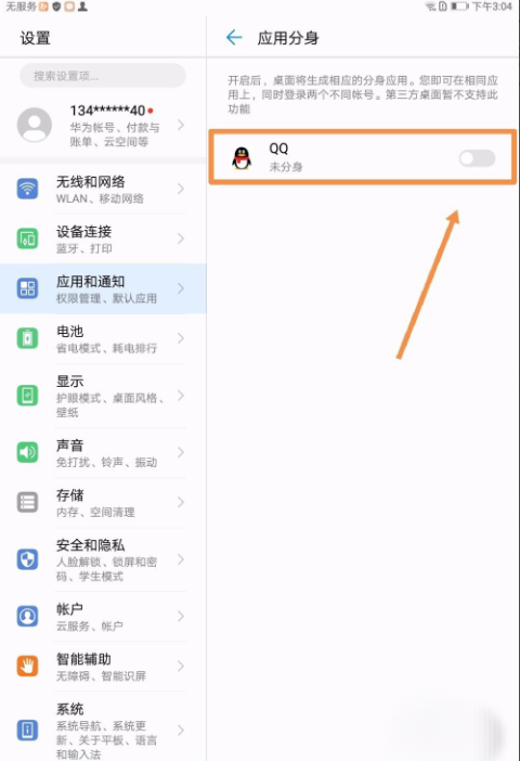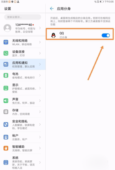 4.开启软件右边的应用分身开关按钮。