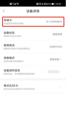 4.点击进入设备详情界面即可查看内存卡了。