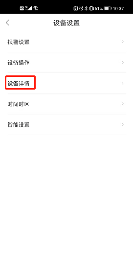 3.点击设置按钮进入设置界面,找到【设备详情】。