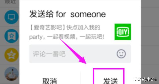 3、然后我们接着点击邀请好友,选择邀请好友的方式,可以是qq微信,然后选择好友接着点击“发送”,等待好友愿意,就可以和你一起看了。